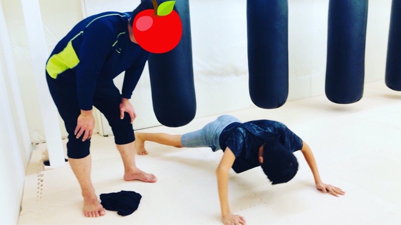 キックボクシングの練習が一通り終わったら補強で腕立て伏せと腹筋を100回ずつしてました‼️
